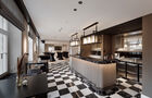 La sala principal de Maison Visavis, diseñada con un ambiente elegante y materiales nobles como el hermoso suelo de parquet y el suelo de mármol original en la zona del bar, irradia un carácter armonioso y sofisticado. Un amplio vestíbulo con barra integrada le da la bienvenida y le invita a pasar horas inolvidables en un ambiente único.