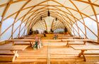 La tienda Strawboid es una tienda neutra en CO2 y está hecha íntegramente de madera.