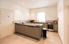 Hay 3 frigoríficos para botellas en el bar bellamente decorado . Hay una gran cámara frigorífica entre la barra y la cocina.