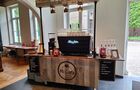 ¿Organizas un evento en un espacio cerrado? También contamos con una cafetería rústica de madera, hecha con cajas de fruta de Limburgo.
