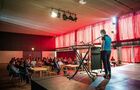 Maar het extra materiaal, micro's, tafels, dat we besteld hadden, was aanwezig. De stoelen waren goed opgesteld. Onze dag was prima: het geluid was prima.