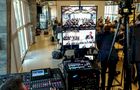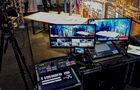 Para mostrar la transmisión en el sitio, instalamos pantallas de gran formato, un proyector o una pared de video.