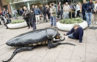 Cuatro enormes escarabajos de aspecto real aparecen en medio de la ciudad. El desfile "kafkiano", formado por una cucaracha gigante, una enorme mariquita, un escarabajo ciervo y un escarabajo joya, recorre las calles provocando la excitación y la "histeria colectiva" del público. Les acompaña el Guardabosques, que intenta controlar la situación. "Que no cunda el pánico! Lo tenemos todo bajo control!", grita, mientras la asombrada multitud se encoge gritando. El suceso, electrizante y generador de caos, culmina en un divertidísimo espectáculo circular en una plaza de la ciudad.