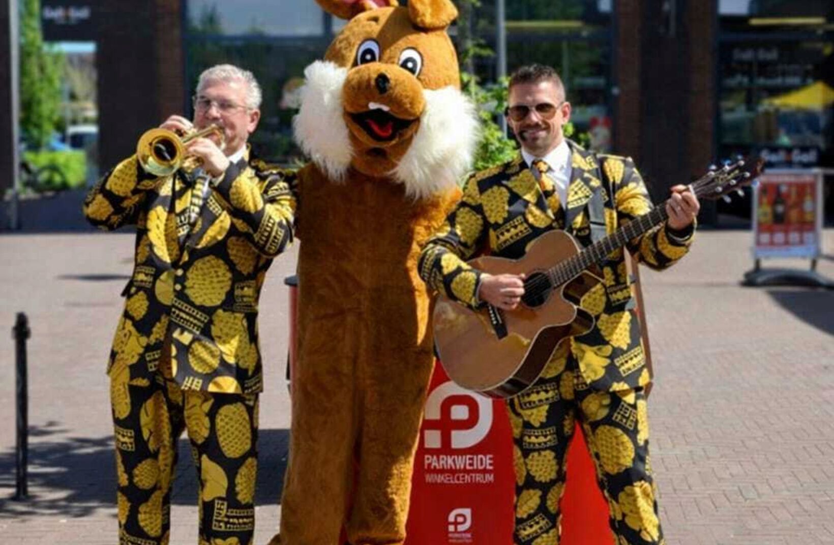🌺 Muzikanten in Pasen stijl - rijdend op een fiets of wandelend door uw winkelcentrum