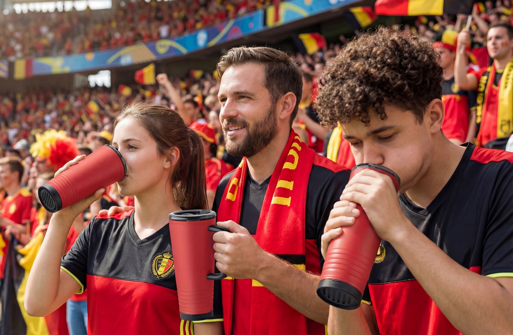 La tapa incorpora una bocina integrada para que los aficionados puedan animar activamente a su equipo. No se necesitan accesorios adicionales; todo está integrado en una solución inteligente. Esto hace que esta copa sea ideal para partidos, presentaciones públicas y activaciones de marca.
